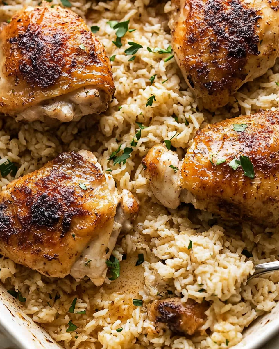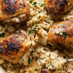 Few dishes offer the perfect blend of simplicity and flavor quite like oven-baked chicken and rice. This one-pan meal brings together tender, seasoned chicken thighs and perfectly cooked, buttery rice infused with garlic, onion, and savory broth. With minimal prep and just one baking dish required, it’s the ultimate recipe for busy weeknights or relaxed weekend dinners.